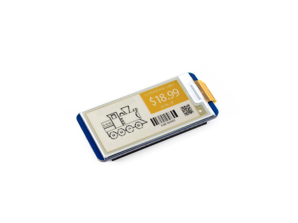 This is an E-Ink display HAT for Raspberry Pi, 2.13inch, 212×104 resolution, with embedded controller, communicating via SPI interface, supports yellow, black, and white three-color display.