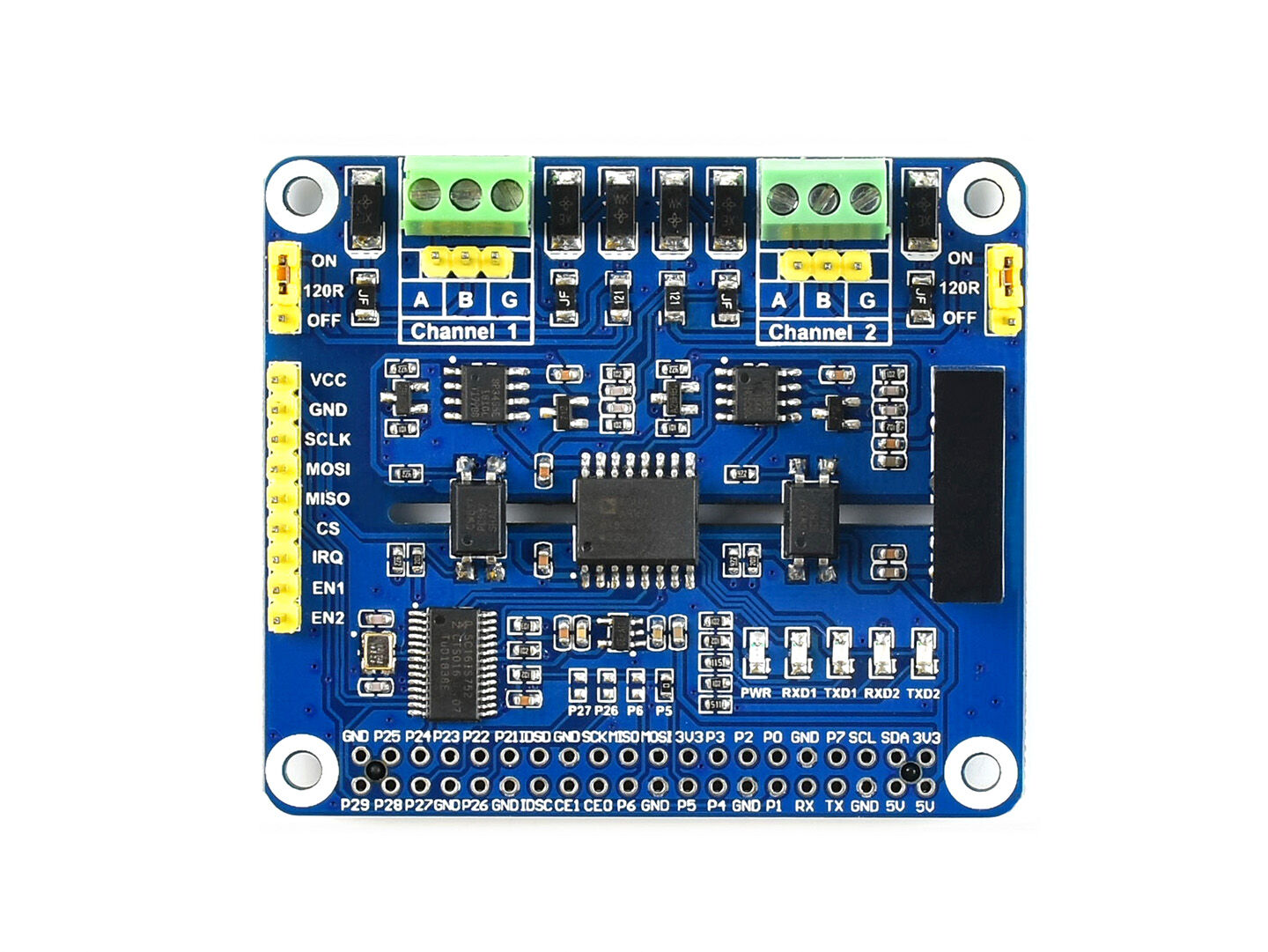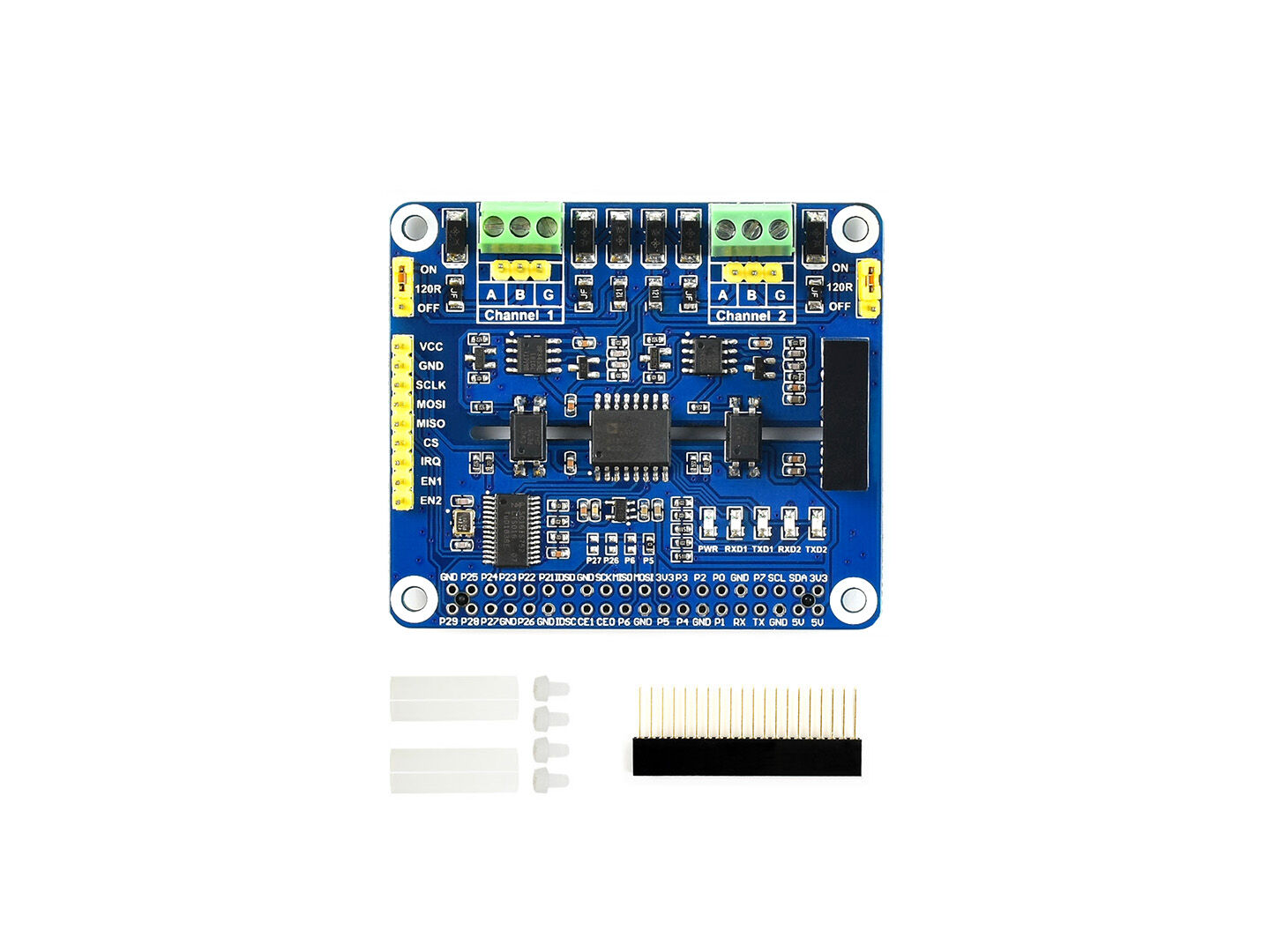 This is a Raspberry Pi Hat for converting the SPI interface into the RS485 interface. The Hat can control 2 RS485 interfaces working at the same time.