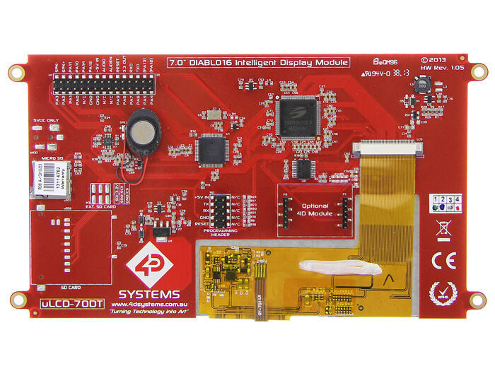 The uLCD-70DT is designed for applications demanding a large intelligent display module, and is the largest size available from 4D Systems to date.