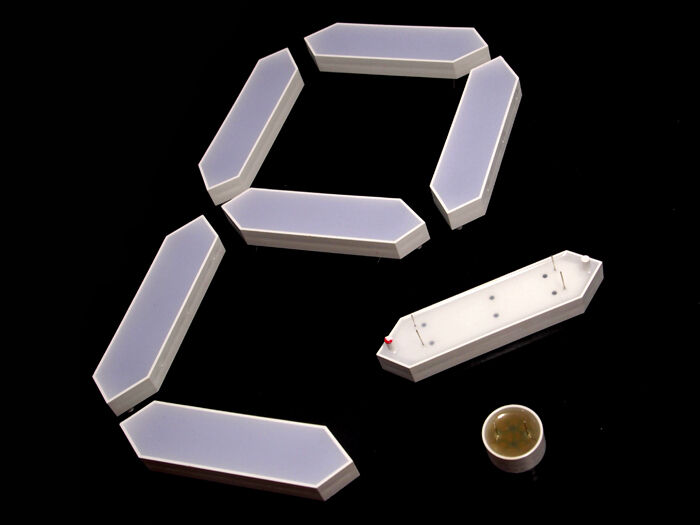 Find segments in digital displays an interesting material to create art work with? Then look no further than our seven-segment digital building blocks. They allow you to design words, numbers, or unique patterns. One unit of this product includes 3 horizontal segments and 4 vertical segments, enough to build the number “8” or whatever else you think of. Order more if you want to make a larger pattern.
