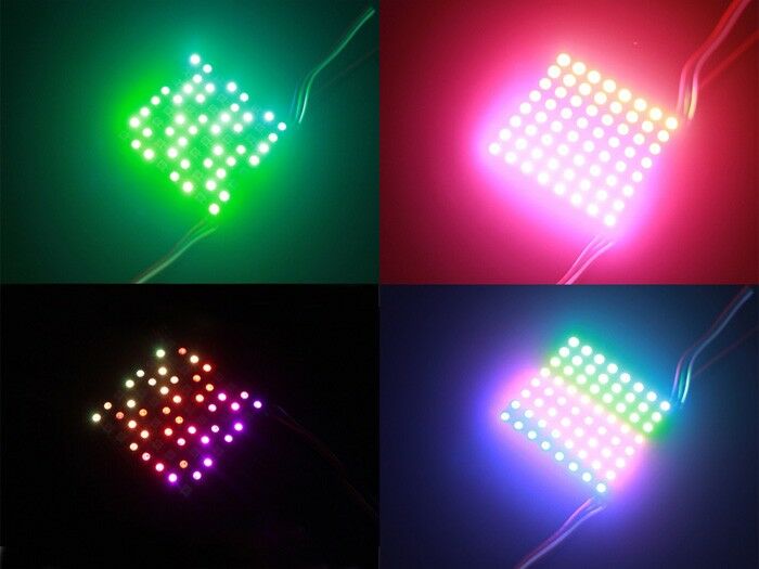 8*8 Digital RGB LED Matrix is consist of WS2812B RGB LED. WS2812B is a 5050 components that integrate control circuit and RGB chip in a package.