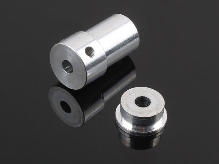 This coupling consists of two parts. Plug the two parts into the bore of the wheel from each side respectively, then fasten them with an M4*18 screw. Two M3*5 set screws are also needed to fix the coupling onto the motor shaft.