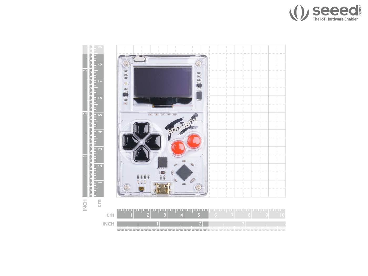 • Convenient I/O: 6 Momentary Tactile Buttons, 128×64 1-bit OLED, 4 Ch. Piezo Speaker & Blinky LED