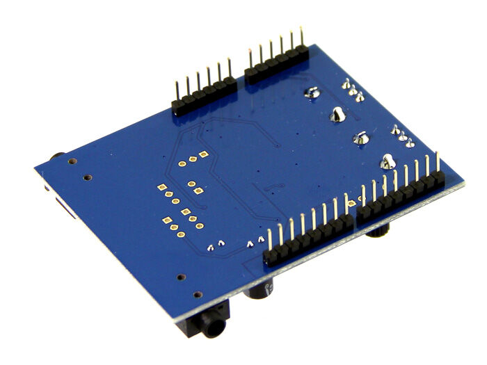 The Audio Codec Shield pins out all of the useful pins on the codec, including the microphone pins, the line in and line out pins, the headphone pins, and the midrail bias voltage pin. This extends the Shield’s productivity beyond the Arduino platform, to a general purpose breakout board for the codec. It also has a 5V to 3.3V level translator so it can be used with most microcontroller platforms. And the enable pin on the level translator is pinned out, in case you want to multiplex your SPI line.