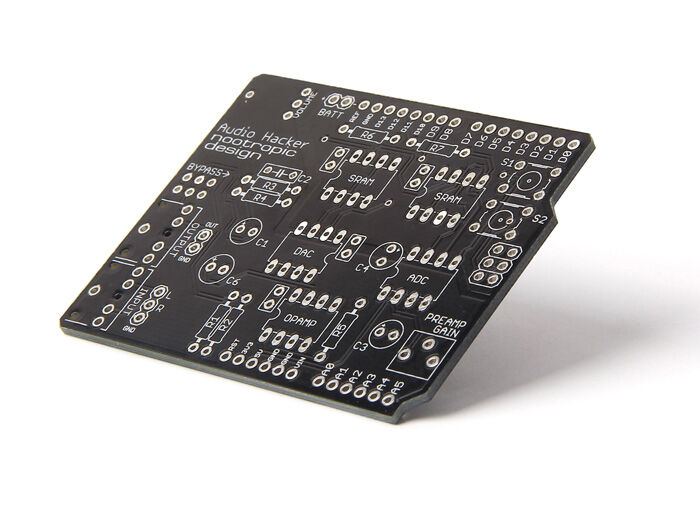 The Audio Hacker shield for Arduino allows you to perform realtime digital signal processing. Record audio samples into memory and play them back. Mix samples, manipulate audio, build audio effects, or synthesize entirely new sounds. All with Arduino programming!