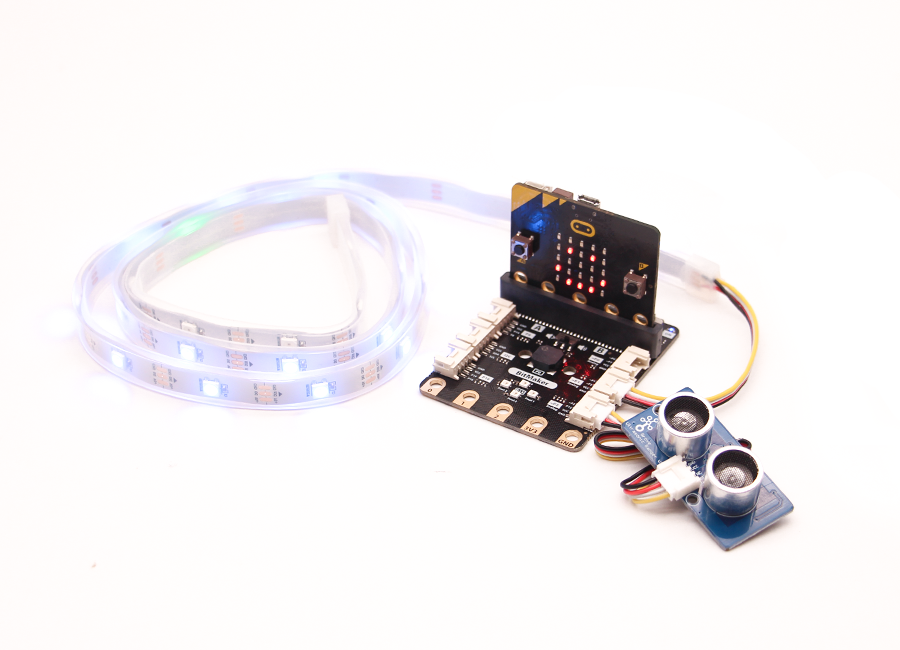 The included micro:bit expansion board, BitMaker incorporates six Grove connectors, one RGB LED strip and one buzzer to make it possible for some beginners to still use the micro:bit without purchasing extra modules.