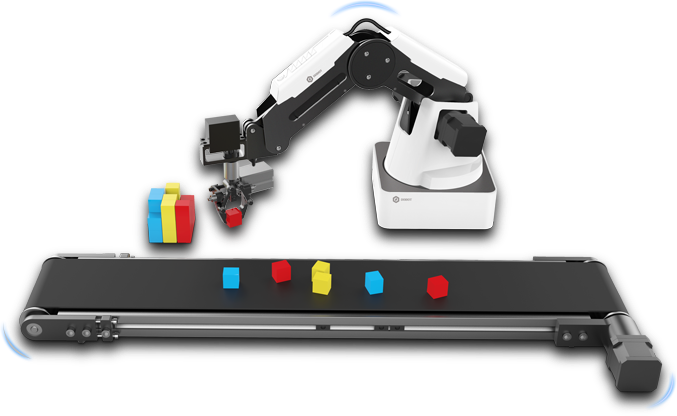 The Conveyor Kit for Dobot Magician makes you have a complete production line simulation. Conveyor belt with adjustable speed, distance and color sensor, combined with the powerful and programmable Dobot Magician, these are the ideal essentials for you to create a highly effective simulated production line, or even to apply to actual factory scenes.