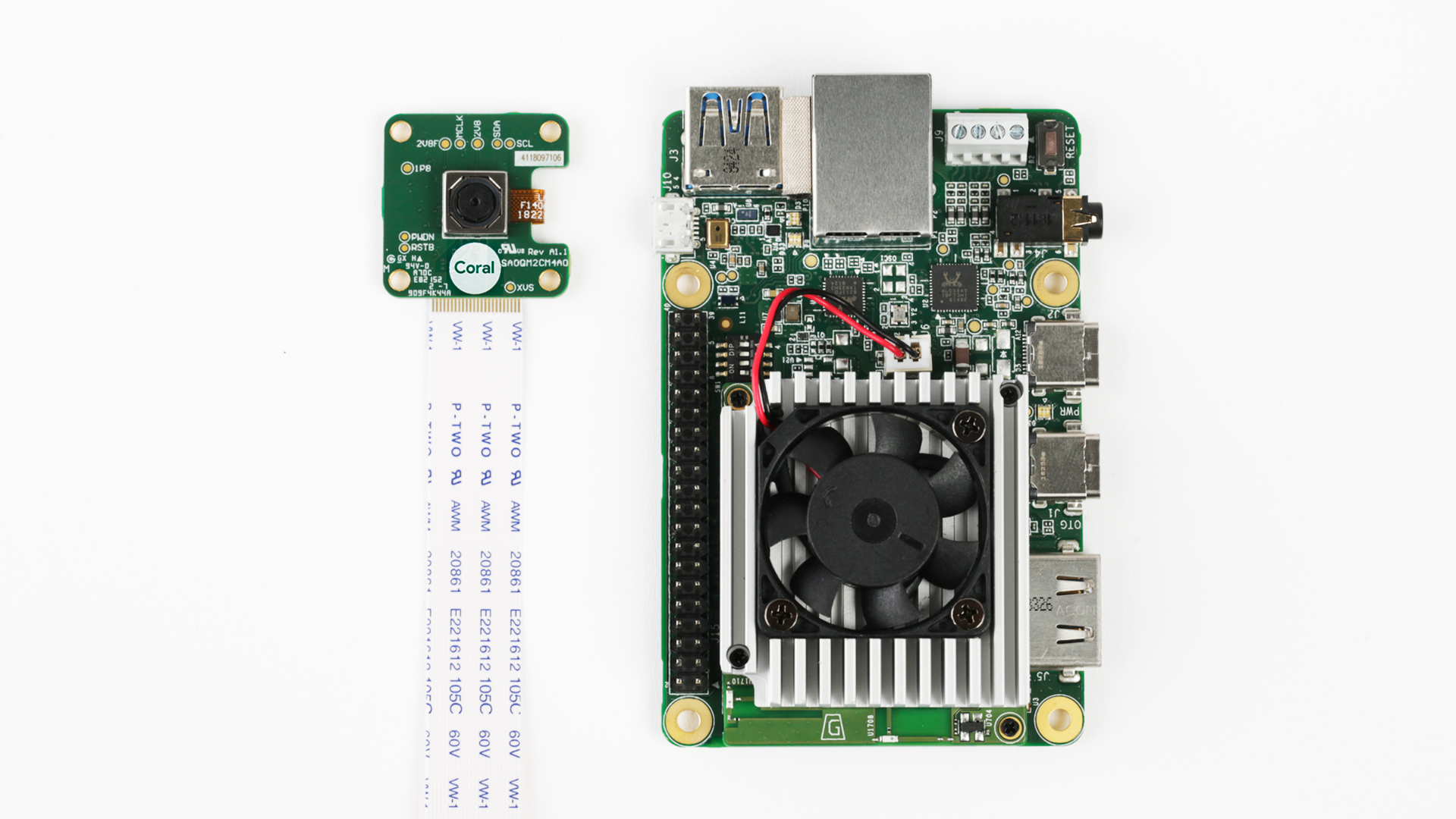 The Coral Camera is a 5MP camera designed for use with the Coral Dev Board, providing input for computer vision use cases. The camera attaches to the Coral Dev Board’s MIPI CSI interface with a with a 24-pin FFC.