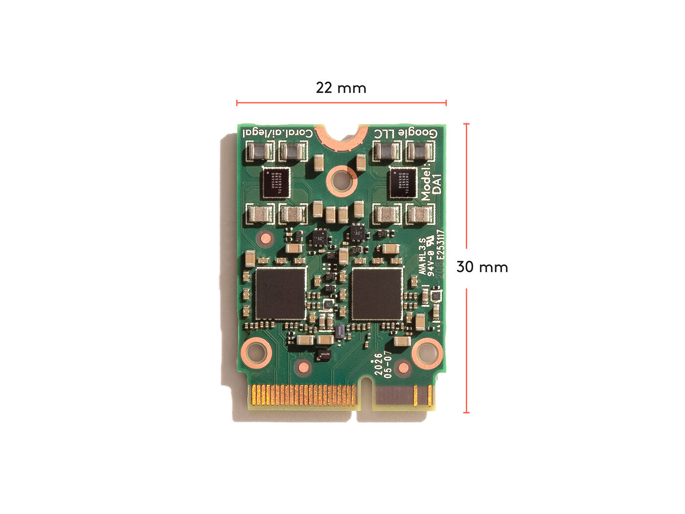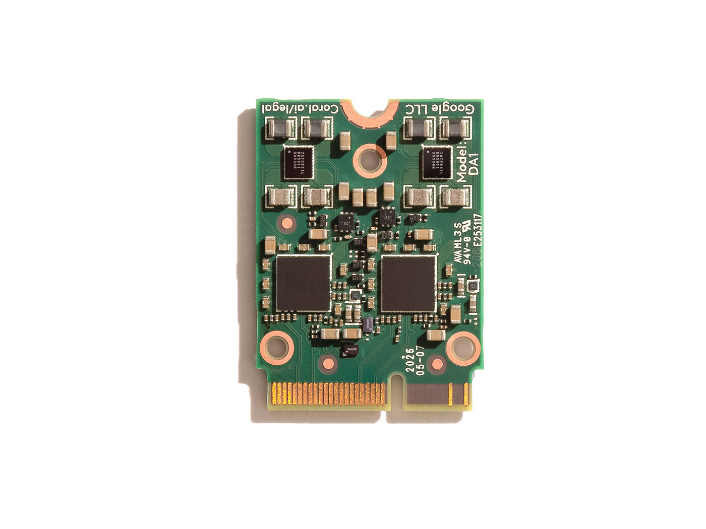 The Coral M.2 Accelerator with Dual Edge TPU is an M.2 module (E-key) that includes two Edge TPU ML accelerators, each with their own PCIe Gen2 x1 interface.