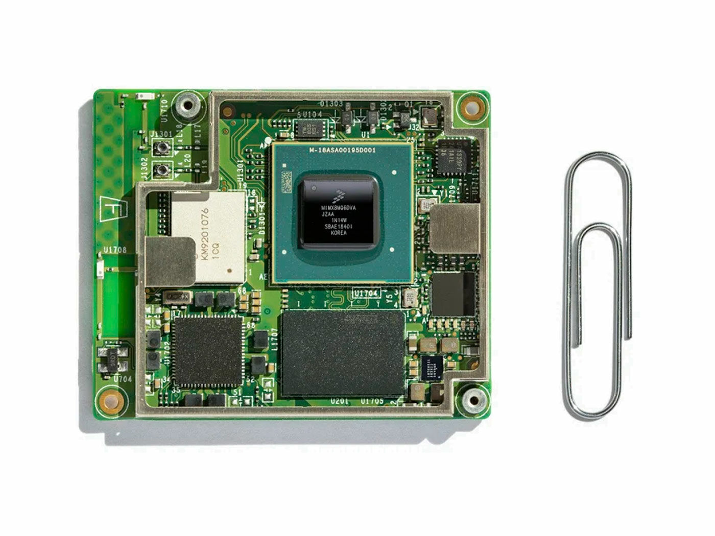 The Coral System-on-Module (SoM) is a fully-integrated system that helps you build embedded systems that demand fast machine learning (ML) inferencing. It contains NXP’s iMX8M system-on-chip (SoC), eMMC memory, LPDDR4 RAM, Wi-Fi, and Bluetooth, but its unique power comes from Google’s Edge TPU coprocessor.