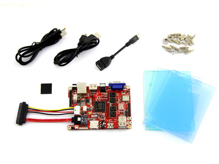 Cubietruck is the 3rd board of Cubieteam, we also name it Cubieboard3. It's a new PCB model adopted with Allwinner A20 main chip, the same with Cubieboard2. But it is enhanced with some features, such as 2GB memory, VGA display interface on-board, 1000M NIC, WIFI+BT on-board, support Li-battery and RTC, SPDIF audio interface.