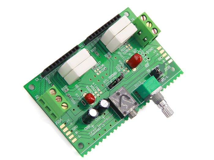 The amp is stereo efficient, digital amplifier power stage for driving speakers up to 2x10W/4Ω. The high efficiency of the amp allows it to do 2x10W/4Ω without external heat sink. This module has standby and mute function, so Arduino can control it how and when it works.