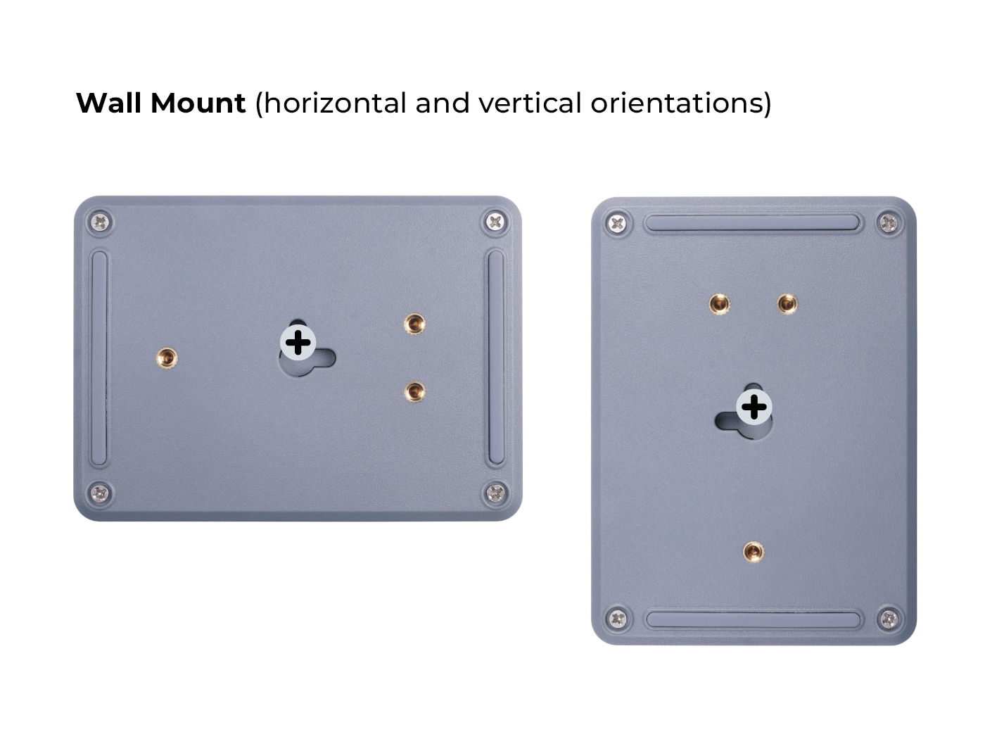 The case has long rubber feet for better stability when placed on a flat surface. You can mount this case in two different methods. One is to use the keyhole slot wall mount and hang it on the wall (you can hang in 2 different orientations). The other is to use the 3 mounting holes and mount onto a DIN rail.