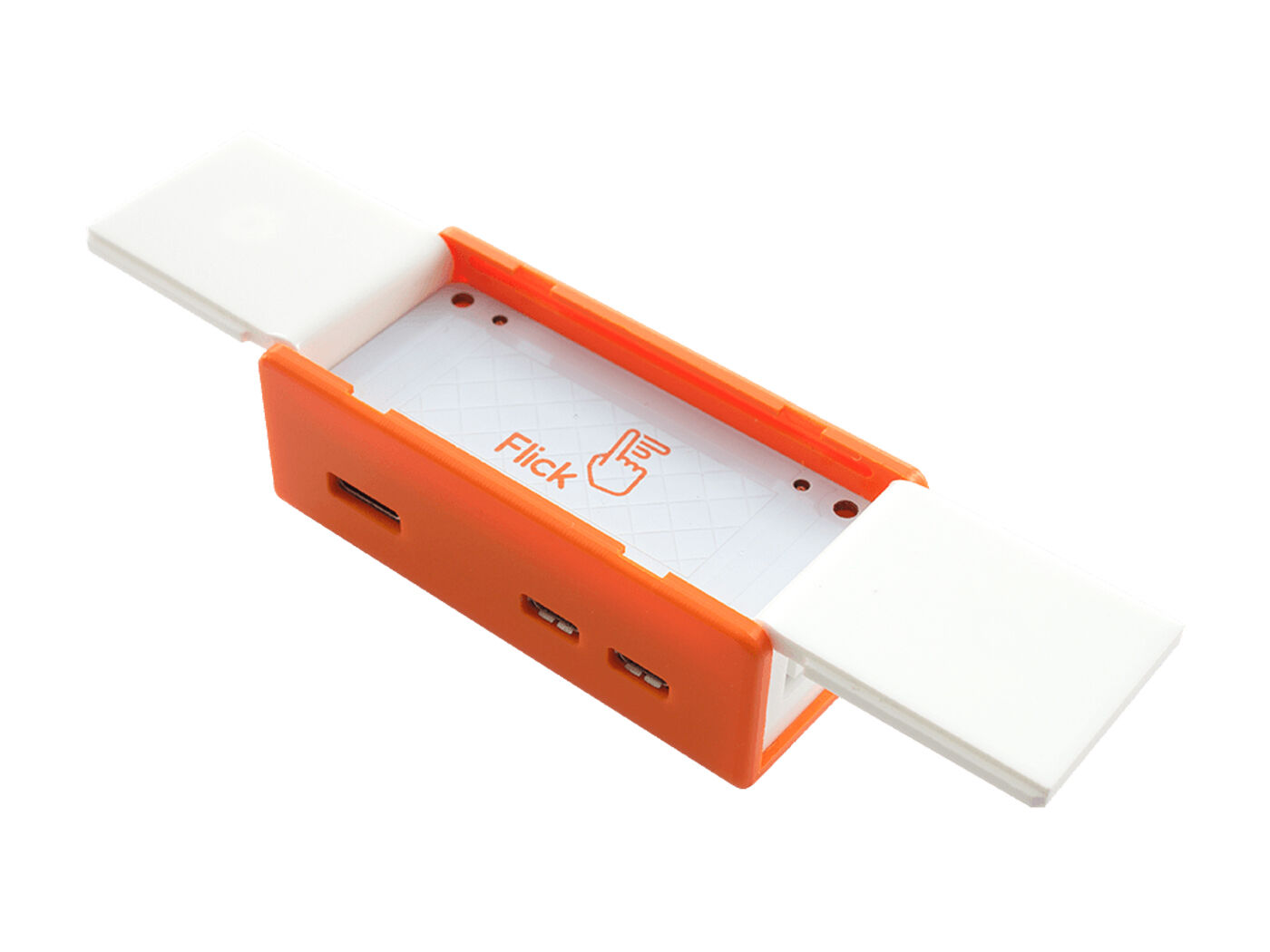 Spice up your Flick Zero and Raspberry Pi Zero with a stylish white and orange Flick Zero case! This vibrant and durable case is made up of three parts; an orange base and a white two piece lid.