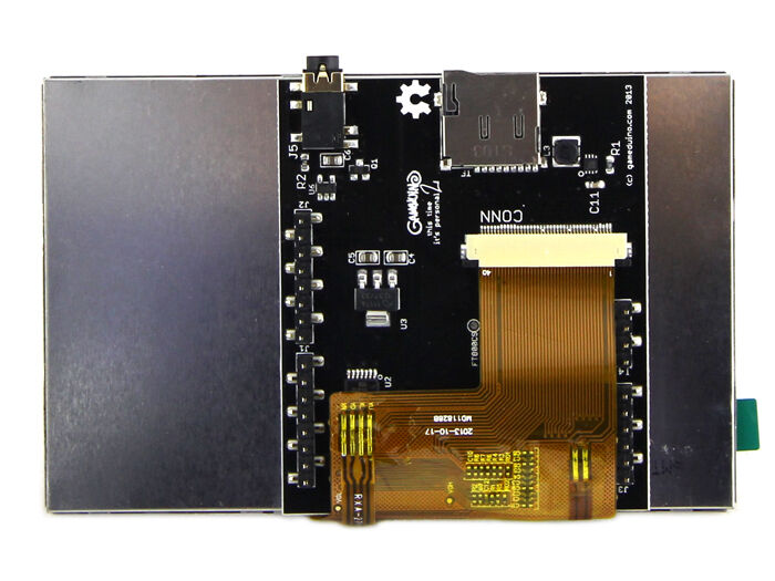 The Gameduino 2 turns your Arduino into a hand-held modern gaming system. Touch control, a 3-axis accelerometer, microSD storage for game assets, headphone audio output, and all-new eye-popping graphics on its bright 4.3 inch screen.