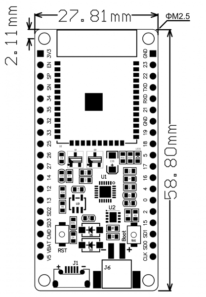 Not all of the peripherals are fully documented with example code, and there are some bugs still being found and fixed. We got it working under Arduino IDE, so you can expect things like I2C and SPI and analog reads to work. And also we got it working under MicroPython, so you can test it with the command line console, it will be nice to programmer. But other elements are still under development. For that reason, we recommend this module for makers who have some experience with microcontroller programming, and not as a first dev board.