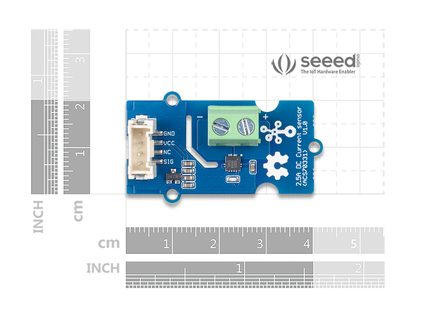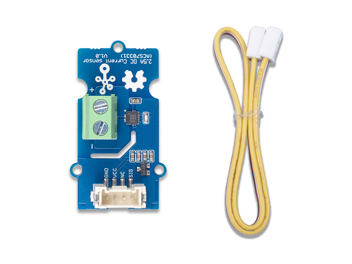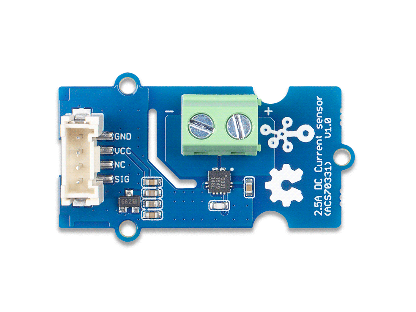 The Grove – 2.5A DC Current Sensor(ACS70331) can measure the DC current up to 2.5A and has a base sensitivity of 800mV/A. This sensor do not support AC current, if you want to measure the AC load please check the: