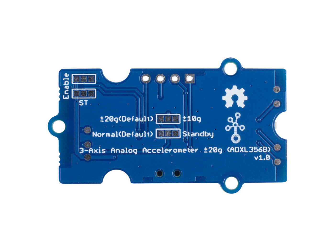 The Grove – 3-Axis Analog Accelerometer ±20g (ADXL356B) is a analog output MEMS Accelerometer. This sensor has two selectable measurement ranges: ±10g, ±20g. You just need to do little calibration work to get a relatively accurate result. The On-Board grove port can output two channel analog data: one for Z-axis, one for X/Y-axis. You can choose output the X-axis or Y-axis signal with the on-board switch. Also you can use the 4-pin welding hole to output X/Y/Z axis at the same time. The power consumption of this sensor is extremely low, 150 μA in normal operation mode and even only 21 μA in standby mode. You can switch the operating mode by changing the pad connection on the back.