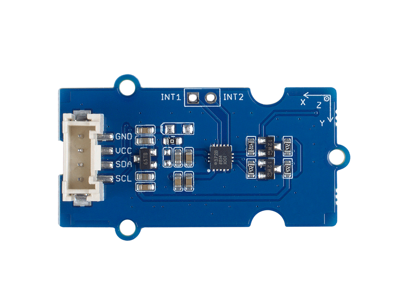 The Grove – 3-Axis Digital Accelerometer ±200g (ADXL372) is a ultra low power digital output MEMS Accelerometer, it can provide a 12-bit output at 100 mg/LSB scale factor. The most notable feature of this sensor is its ultra-low power consumption(only 22μA in measurement mode) and large measurement range(±200g). All the data output via the Grove I2C port, the I2C address is changeable. In order to meet a wider range of measurement needs, the sampling rate can be selected from 400Hz/800Hz/1600Hz/3200Hz/6400Hz, and the bandwidth can be selected from 200Hz/400Hz/800Hz/1600Hz/3200Hz. In addition to being used as an acceleration measurement, you can also use this module to do impact and shock detection.