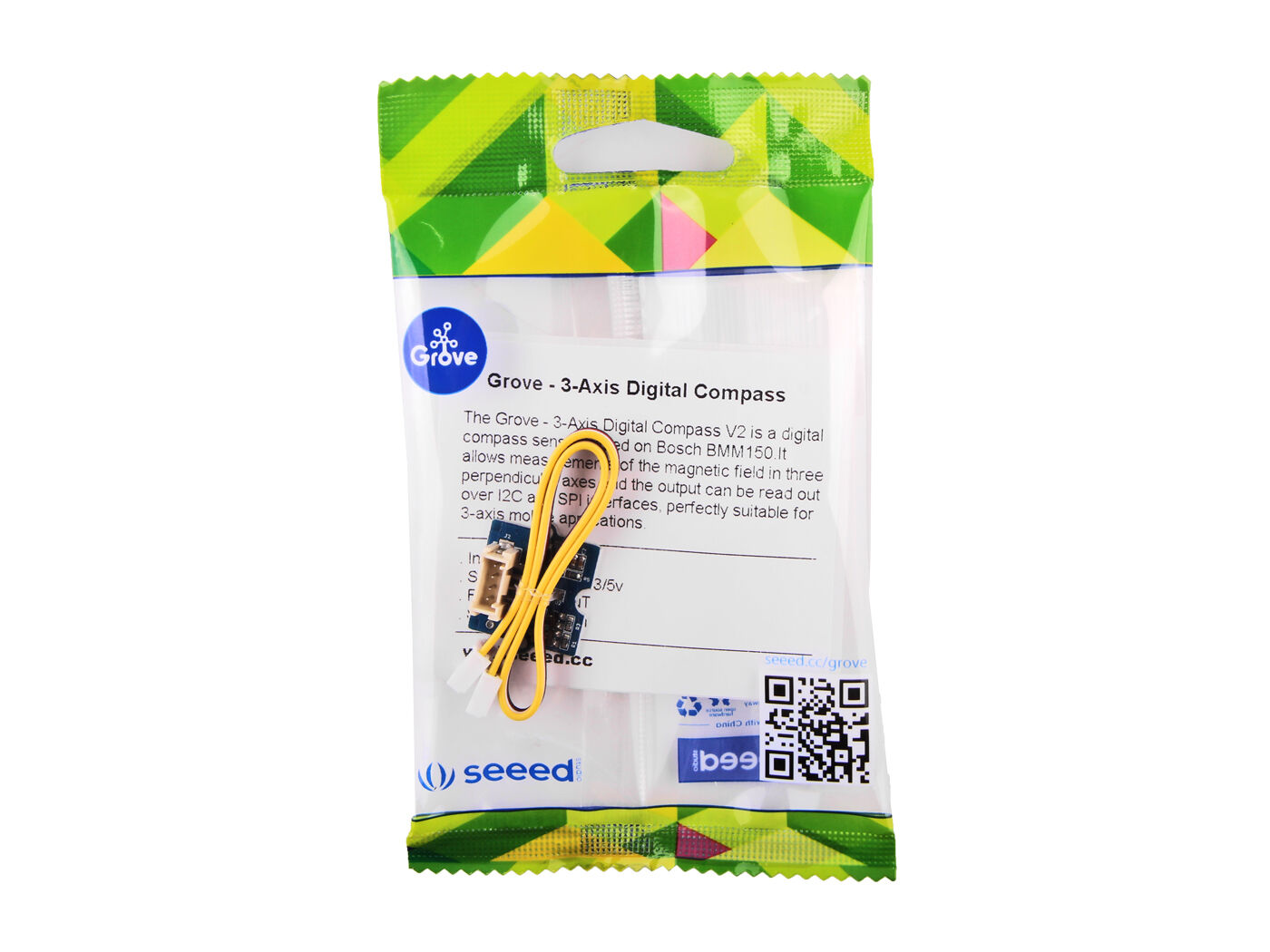 The Grove – 3-Axis Digital Compass is a digital compass sensor based on Bosch BMM150. It allows measurement of the magnatic field in three perpendicular axes and the output can be read out over I2C and SPI interface, perfectly suitable for 3-Axis mobile applications.