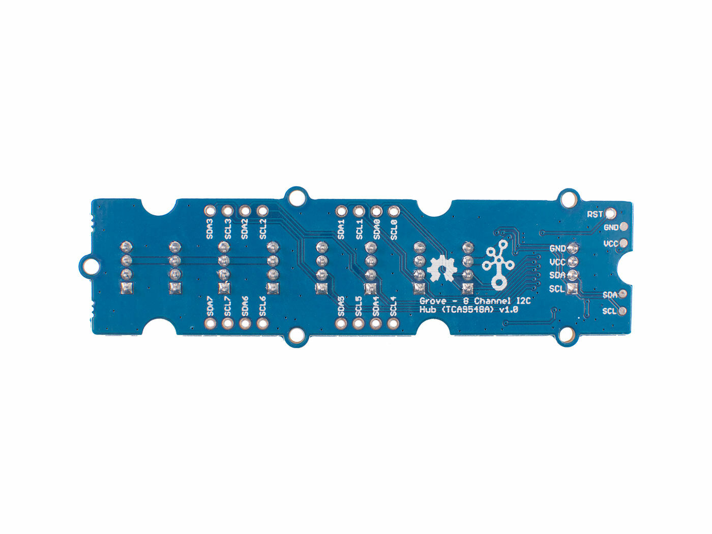 Grove – 8 Channel I2C Multiplexer/I2C Hub is based on TCA9548A I2C Multiplexer Chip, you can plug up to 8 same-address I2C devices to the same Grove I2C system.