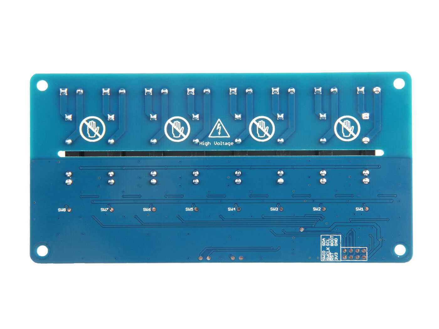 We use an on-board STM32F030F4P6 to control the channels separately. The command from Arduino or other boards is transmit via the I2C interface, the on-board STM32F030F4P6 will parse the command, so that you can control the switch you want.