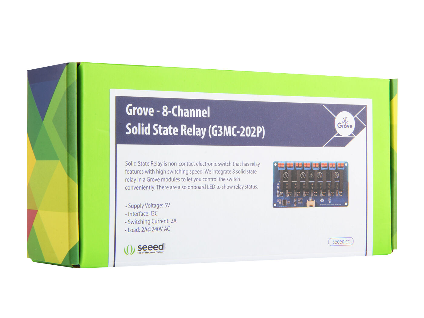 Instead of using coil, packaged solid-state relays(SSR) use power semiconductor devices such as thyristors and transistors, which provide a much faster switching speed than the mechanical relays. The Grove – 8-Channel Solid State Relay is based on the high-quality G3MC202P module, which allows you to use a 5VDC to control MAX. 240VAC. With the help of Grove interface, it becomes very convenient to use the SSR with your arduino.