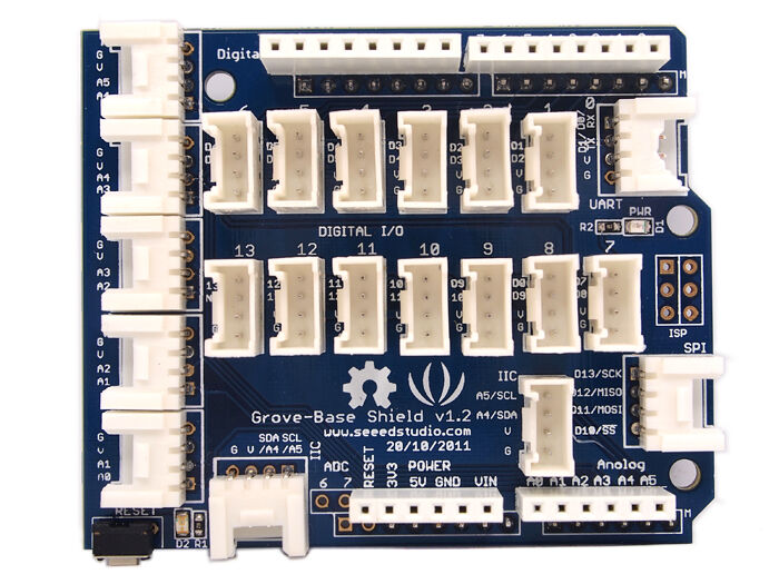Base Shield is compatible with Seeeduino or Arduino UNO and Duemilanove.