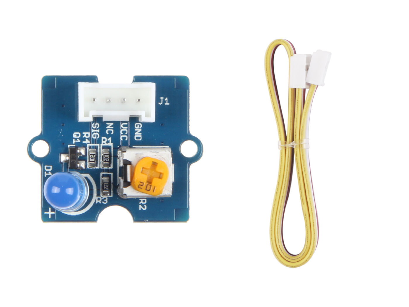 A general-purpose LED module in Grove form factor, available in different colors. Support adjustable LED orientation and adjustable LED brightness.