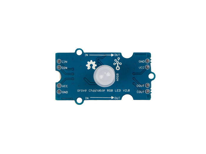 If you have experience using Grove-Chainable RGB LED V1.0, you will find that V2.0 is a bit longer than V1.0. In V2.0, we adjust the grove connectors to be parallel with the board instead of vertically, so that the cable doesn’t need to be crooked.