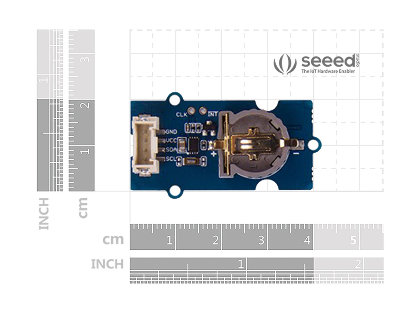We also offer a similar product Grove – DS1307 RTC, which is less accurate but more cost-effective. Grove – DS1307 RTC is based on the clock chip DS1307 and supports I2C communication! Grove – DS1307 RTC uses a Lithium cell battery (CR1225).
