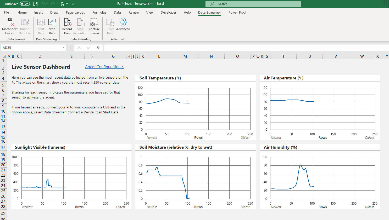 The program combines an affordable hardware kit with curriculum and activities designed to give students hands-on experience in applying precision agriculture techniques to food production. Using an array of sensors, students stream and analyze data in Excel.