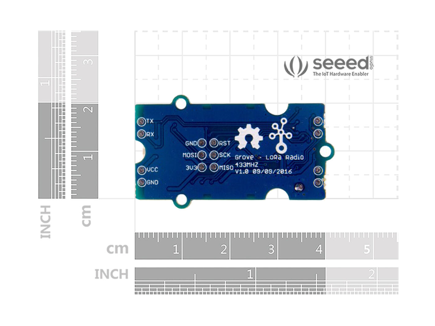 This is the 433MHz version, which can be used for 433MHz communication. You can also find the version for 868MHz at Grove – LoRa Radio 868MHz.