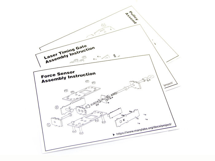 The force sensor, pulley rotation sensor, and laser gate require some easy assembly. You can find assembly instructions in the Other Resources section for those sensors.