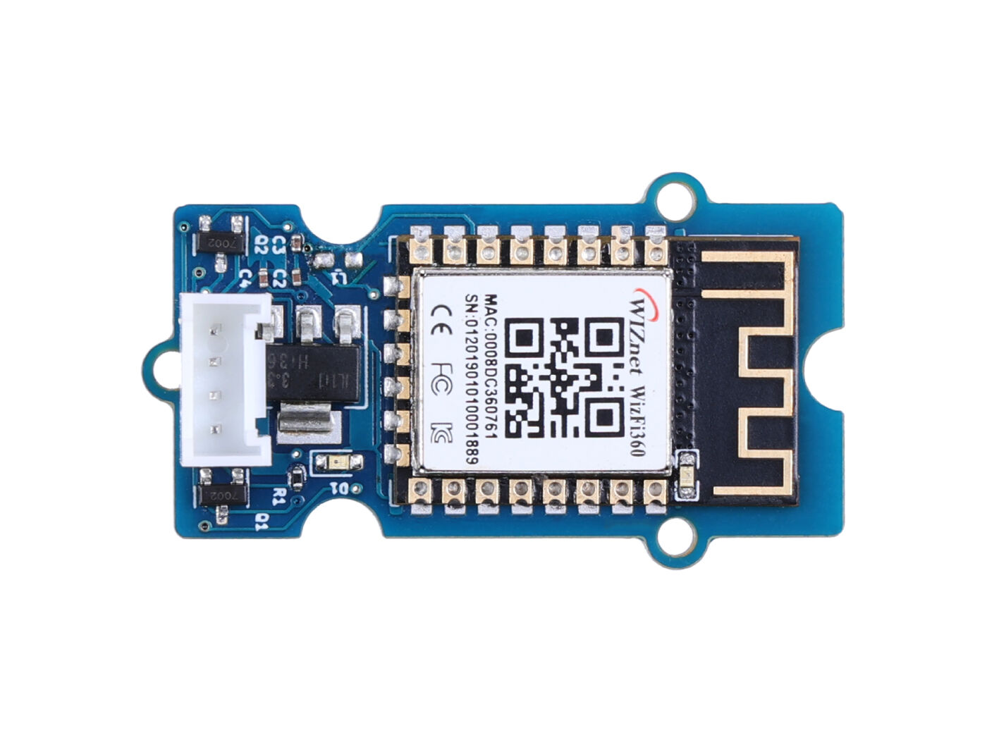Grove UART WizFi360 is based on Wiznet’s wizfi360 Wi-Fi module, which is a cost-effective WiFi module that supports both TCP/IP and microcontroller and multiple modes