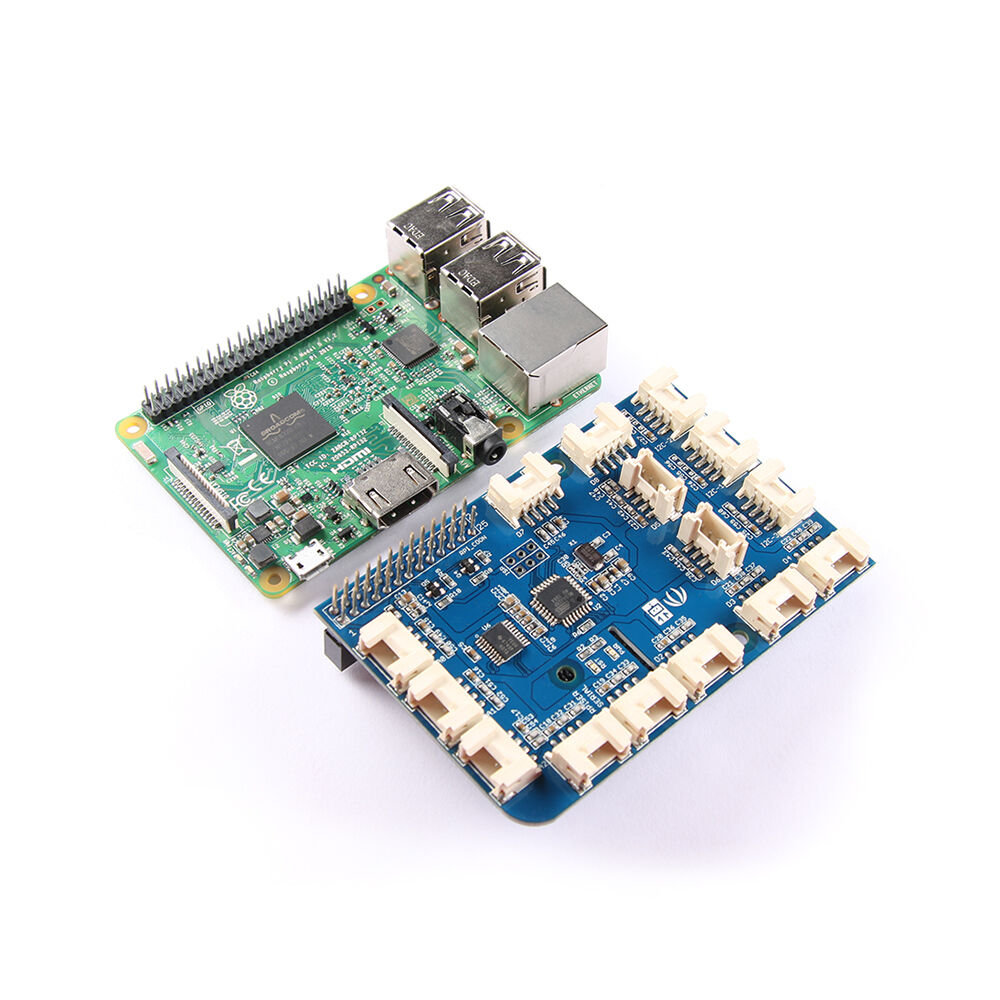 GrovePi+ is add-on board with 15 Grove 4-pin interfaces that brings Grove sensors to the Raspberry Pi.