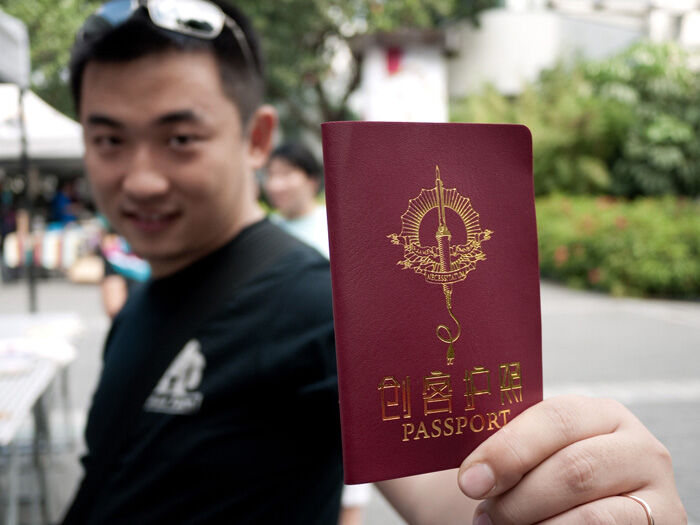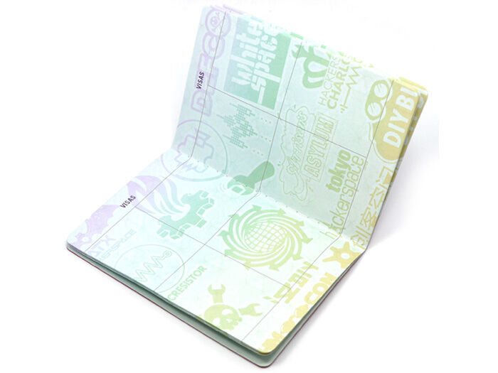 These Hackerspace Passports look a lot like a real Passports, but no fingerprints needed! And, rather than a requirement for passing borders, they are intended to encourage it!