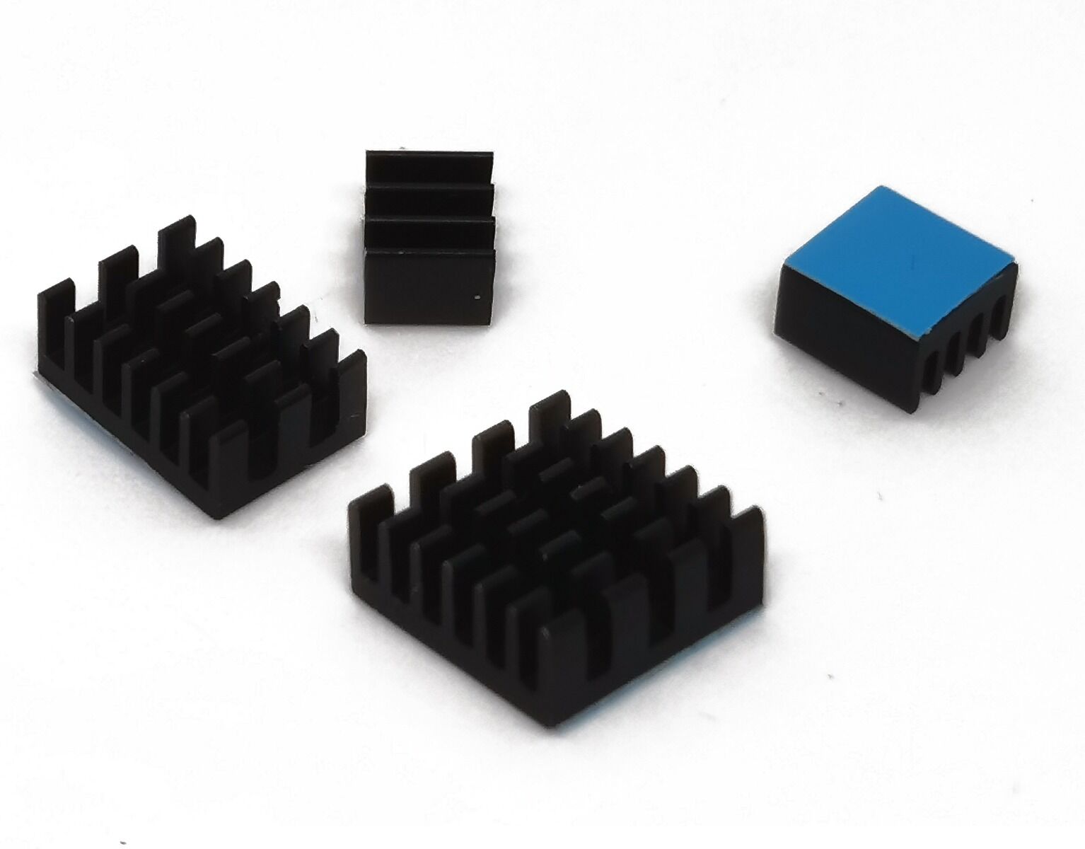 This is a four-piece aluminum heat sink kit to cool the chip on the Raspberry Pi 4B.