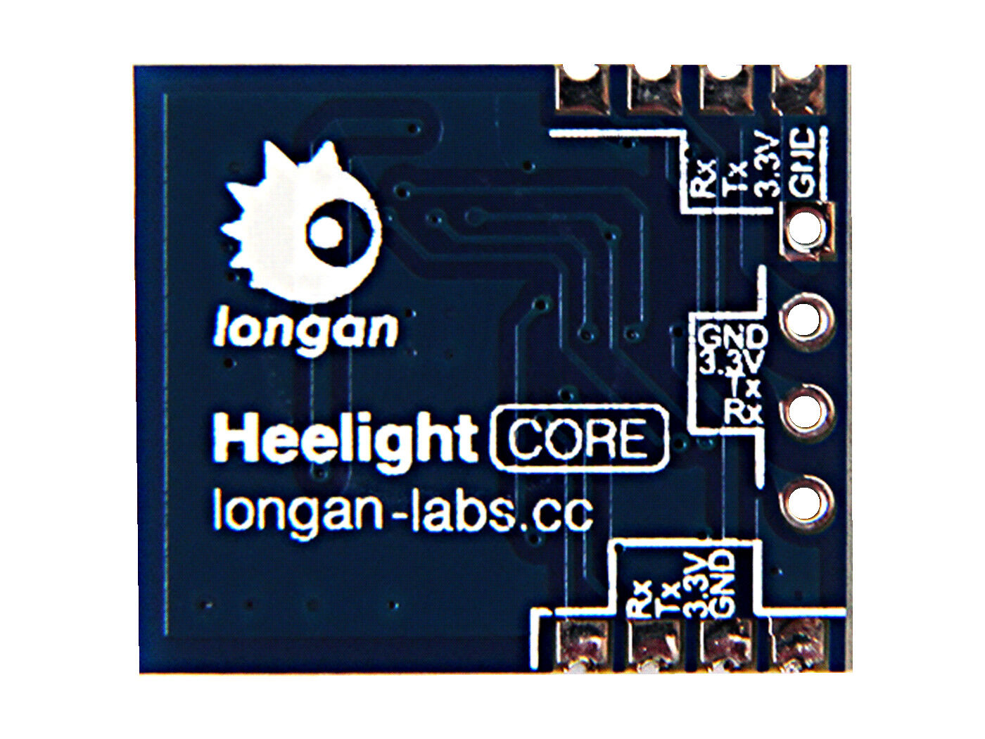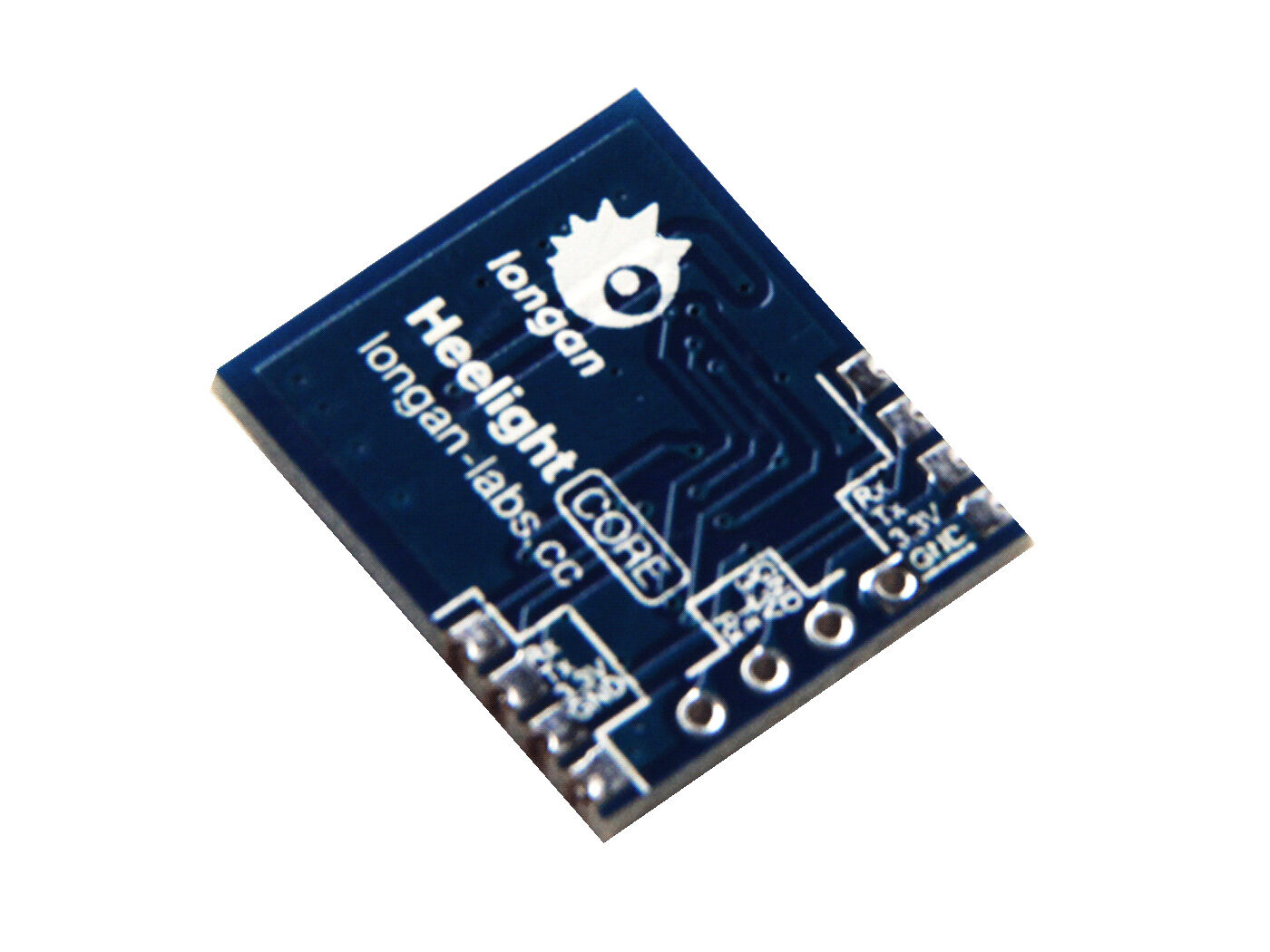 Heelight Core is tiny size, only 20mm*17mm. By using the design of the stamp hole, you can easily integrate heelight core into your product. We also provide the component library in Eagle format. And there is a 4-pin header, which can insert to a bread board directly to build a prototype.