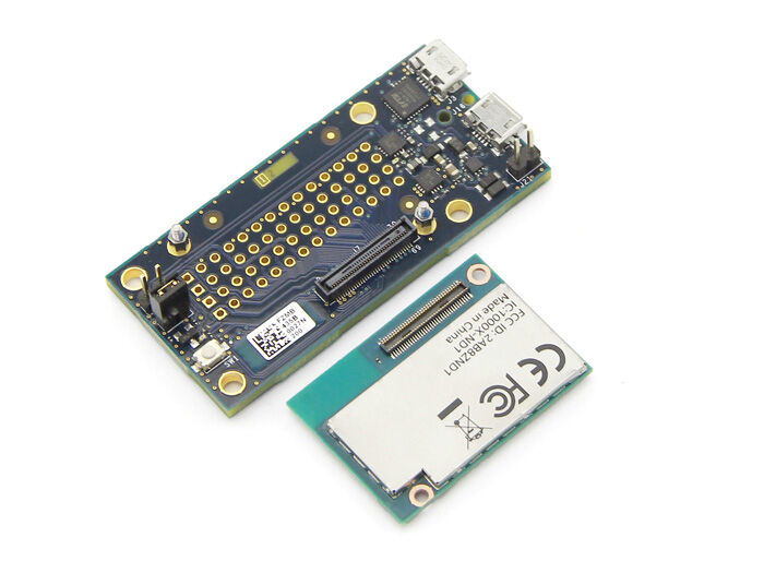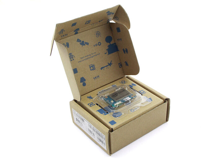 • Uses a 22nm Intel® SoC that includes a dual core, dual threaded Intel® Atom™ CPU at 500MHz and a 32-bit Intel® Quark™ microcontroller at 100 MHz. It supports 40 GPIOs and includes 1GB LPDDR3, 4 GB EMMC, and dual-band WiFi and BTLE on a module slightly larger than a postage stamp.