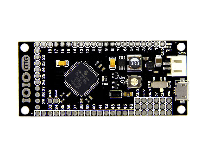 Connect your circuits to any of the 46 I/O pins available on the IOIO-OTG. You can power your circuits off of the IOIO-OTG too.
