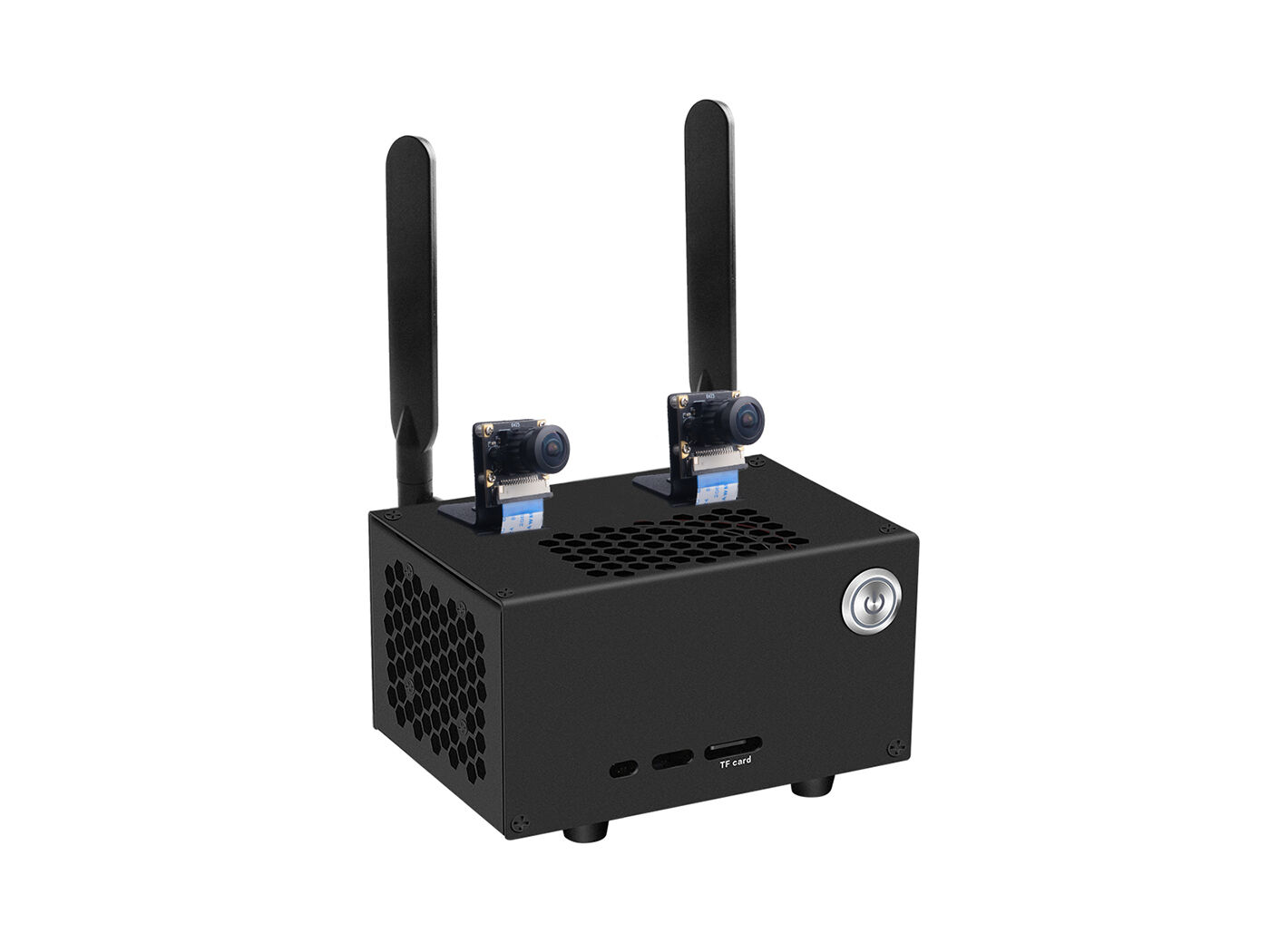 Iron Case for Jetson Nano B01 with Cooling Fan, Dual Antenna Mounts, Power/FR/RESET Buttons