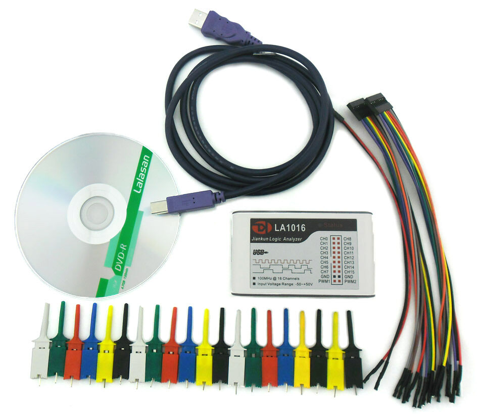 LA1016 is a high-performance logic analyzer with 16 channels and 100M sampling rate. It is composed of two parts: software on personal computer and hardware equipment. It has the advantages of high sampling rate, large sampling depth, easy to use, etc.