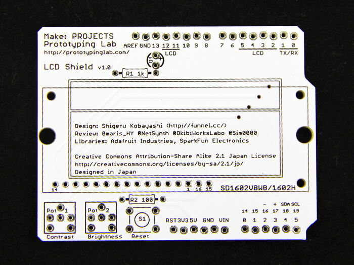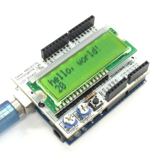 LCD Shield Kit adds a 16×2 Character LCD to your Arduino. You can use it with Prototyping Lab Kit Vol.1