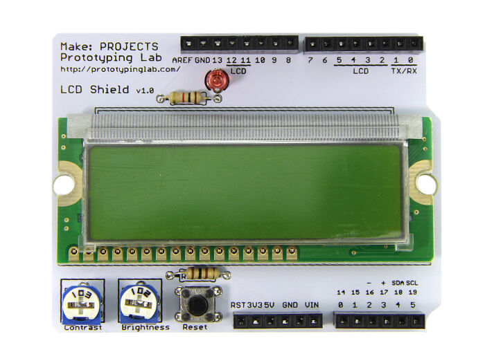 LCD Shield Kit adds a 16×2 Character LCD to your Arduino