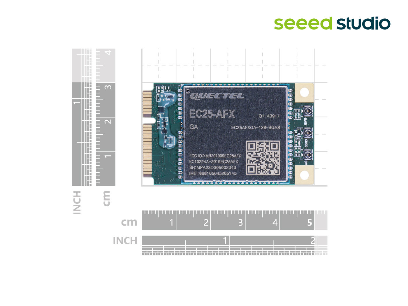 The LTE Cat 4 EC25-AFXGA-mini-PCIe integrates multiple industry standard interfaces and supports various drivers and software functions (such as USB to the serial port driver under operating systems such as Windows 7/8/8.1/10/11, Linux, Android, etc.). It can be applied to reTerminal DM and EdgeBox-RPI-200.