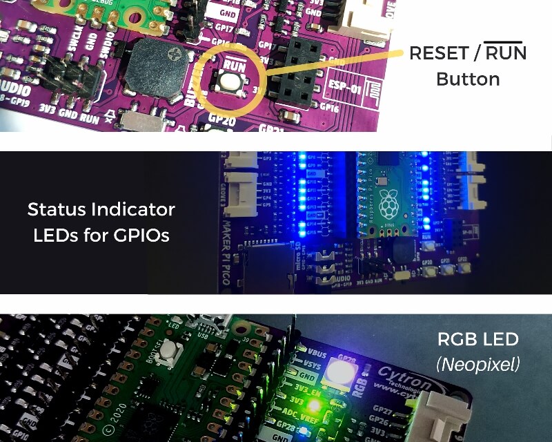 • 1x RGB LED – NeoPixel (GP28)