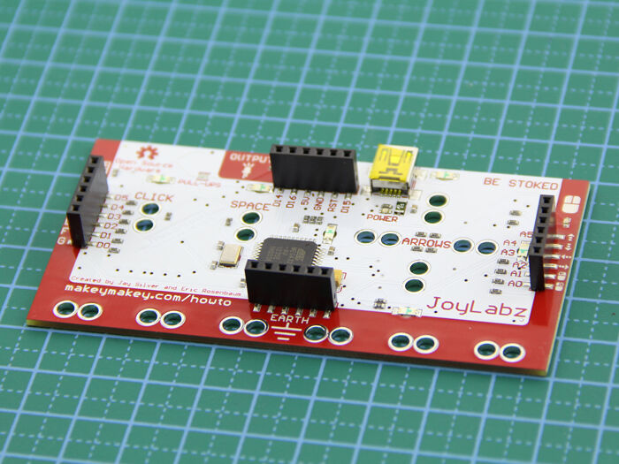 It comes ready to use out of the box with everything you see above: MaKey MaKey, Alligator Clips, USB Cable.