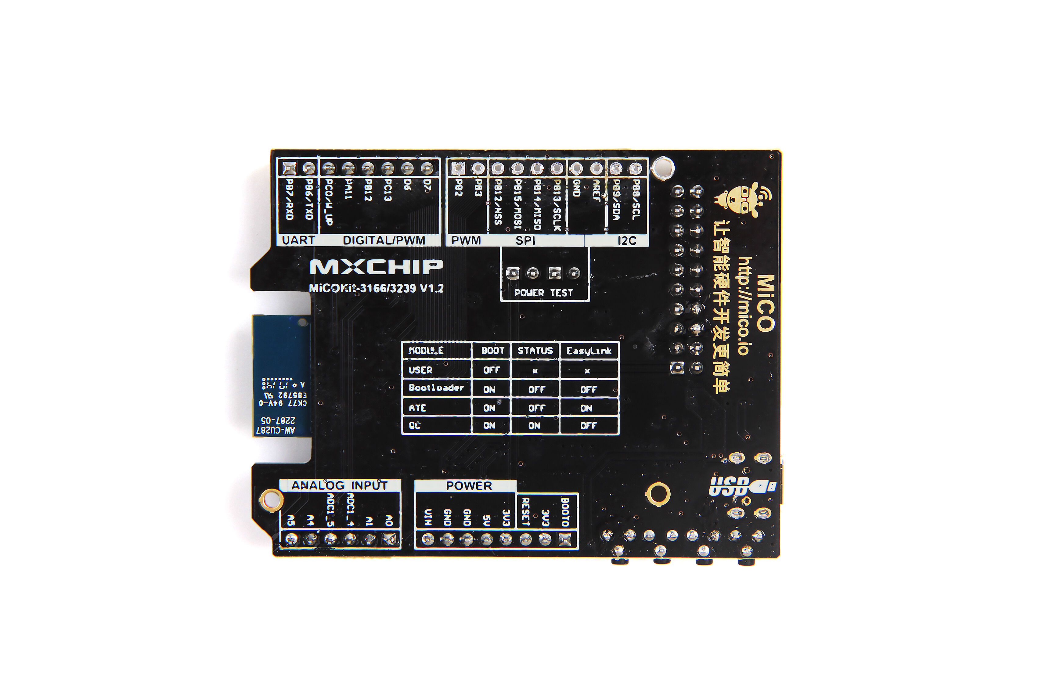 MiCOKit-3166 applies the Wi-Fi module with Arduino standard, main components: