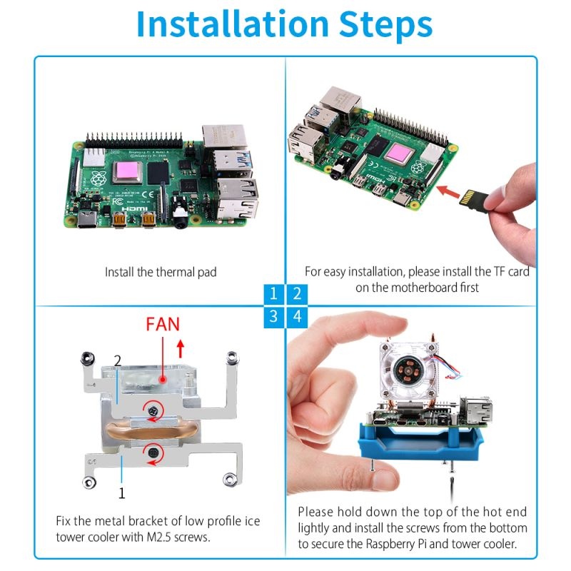 Mini Tower Case for Raspberry Pi is made of ABS material, equipped with easy assembly, high precision OLED screen display and strong heat dissipation Ice Tower Radiator. The designs of elegant appearance, precise positioning of holes, easy wiring, and easy cable management ensure that this is a deliberate choice for your Raspberry Pi.